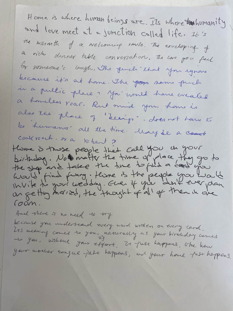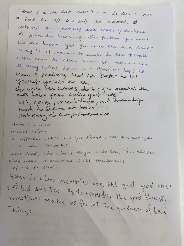 In April 2024, we met at the Putney Public Library in London to start workshopping ideas about the future pieces. We had wonderful conversations about places, people, and languages close to our hearts, and worked on a very fun writing exercise.